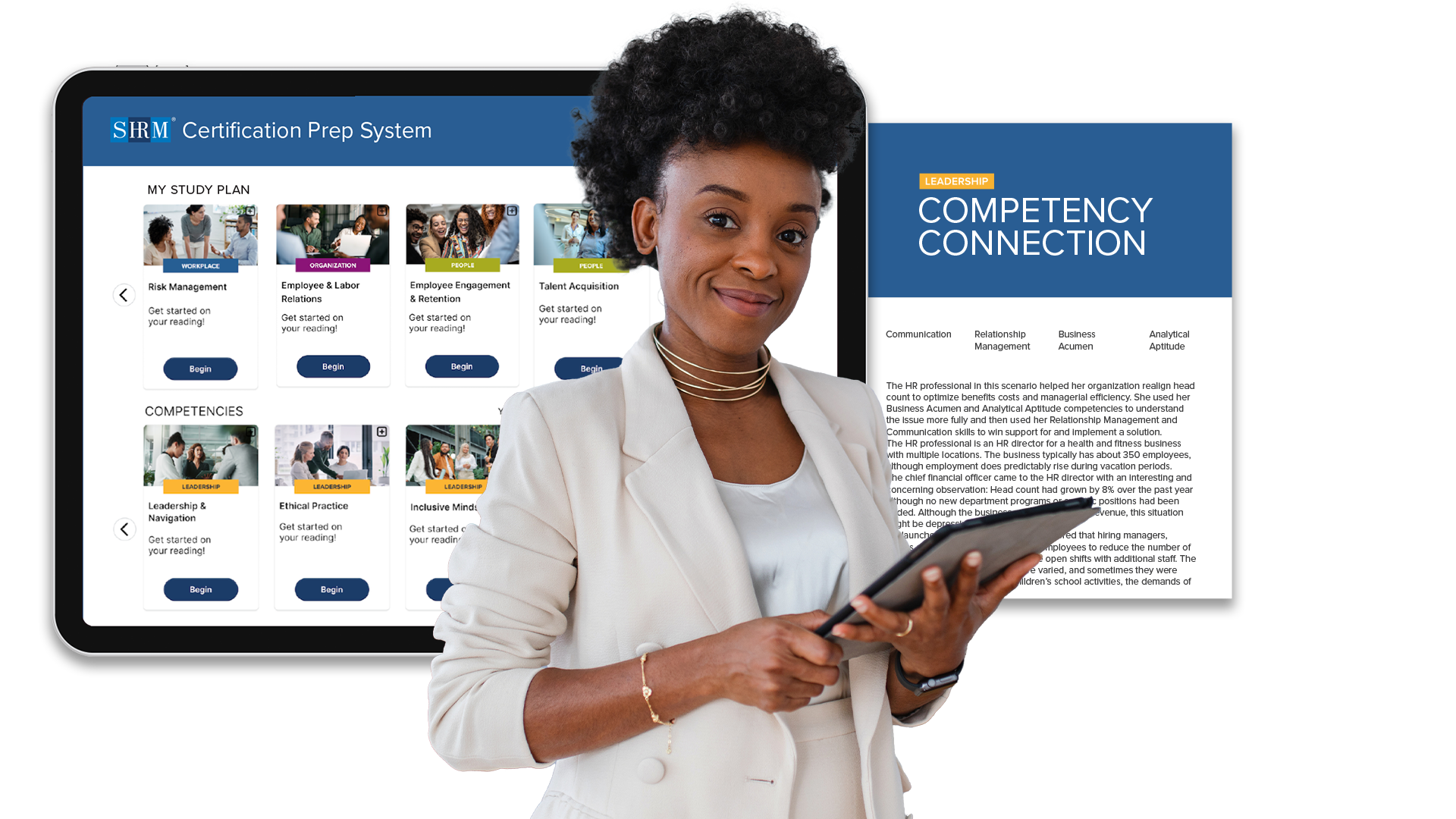 Registration also includes the online and print versions of the SHRM Certification Prep System – the official cert prep tool complete with 2,700+ practice questions, including questions previously used on actual SHRM Certification exams. Designed specifically for adult learners, this interactive online learning tool creates a personalized study path, based on your knowledge, experience and goals, to help you optimize your study time, learn the SHRM Body of Applied Skills and Knowledge® (SHRM BASK®) and approach the SHRM Certification exams with confidence.